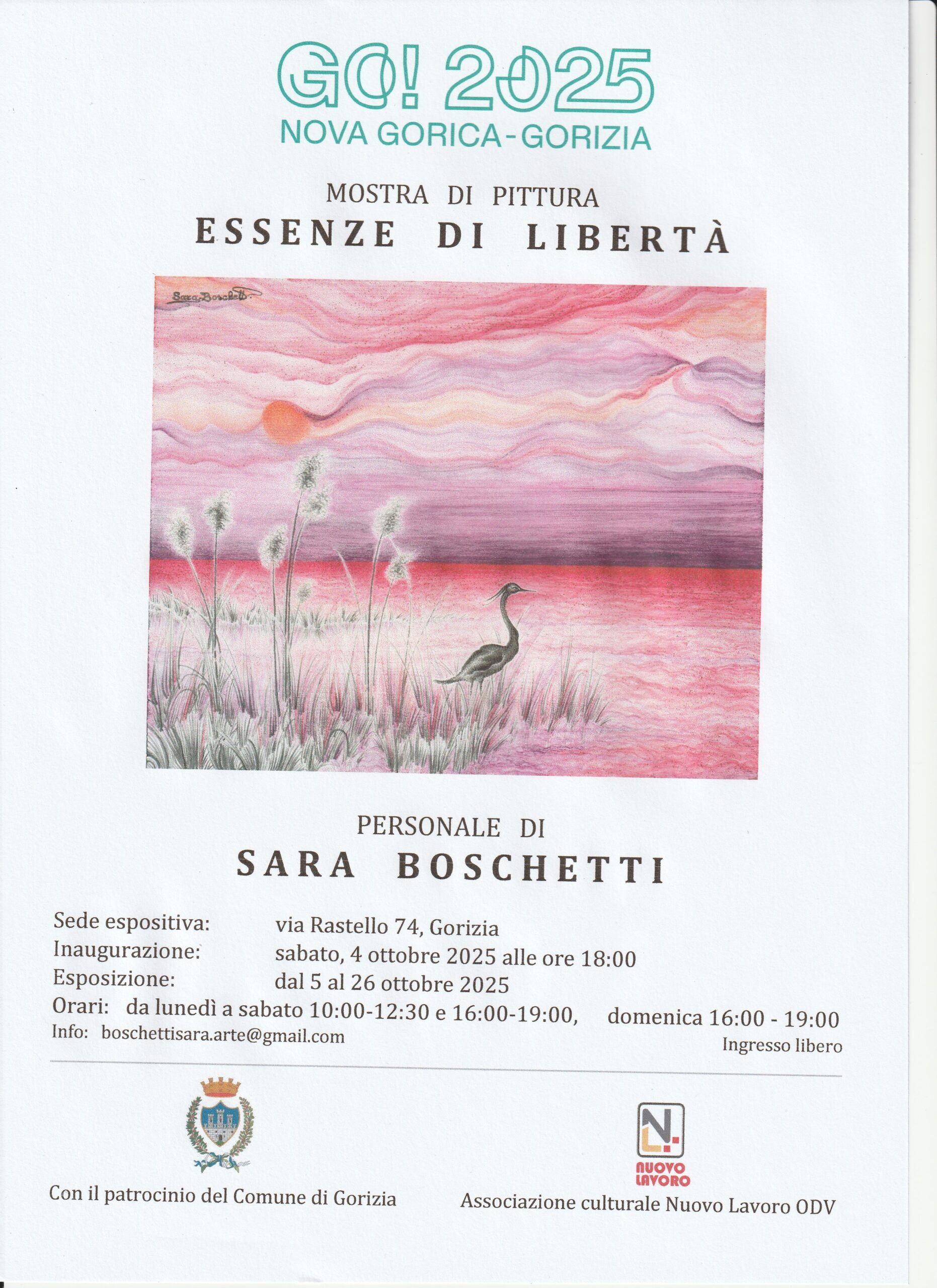 Siete tutti invitati alla mostra personale della pittrice Sara Boschetti presso la sede espositiva di via rastello 74 dal 5 al 26 ottobre 2025 con i seguenti orari: