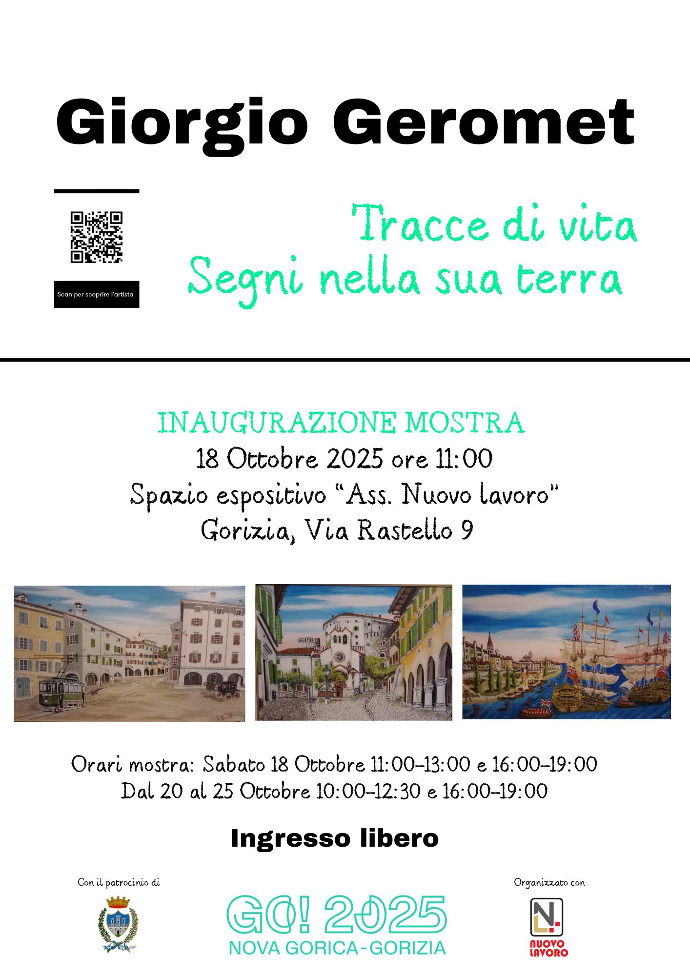 La mostra di Giorgio Geromet è stata pensata ed organizzata dalla sua famiglia e dagli amici più cari per celebrare la sua lunga carriera artistica, nell’anno in cui Gorizia assieme a Nova Gorica è Capitale della Cultura Europea 2025.