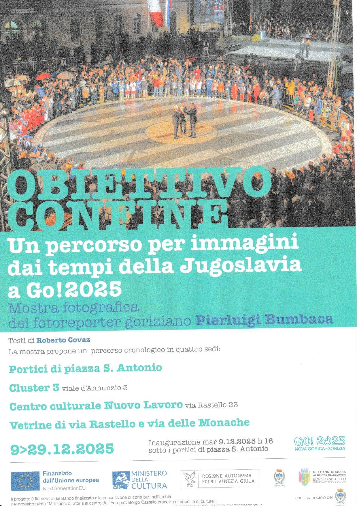L’associazione Nuovo Lavoro O.D.V E.T.S. è lieta di invitarvi all’inaugurazione della mostra fotografica di Pierluigi Bumbaca – “Obiettivo Confine” , che verrà martedì 9 dicembre 2025 alle ore 18:00 presso la sala espositiva 1 in via Rastello 23 – Gorizia